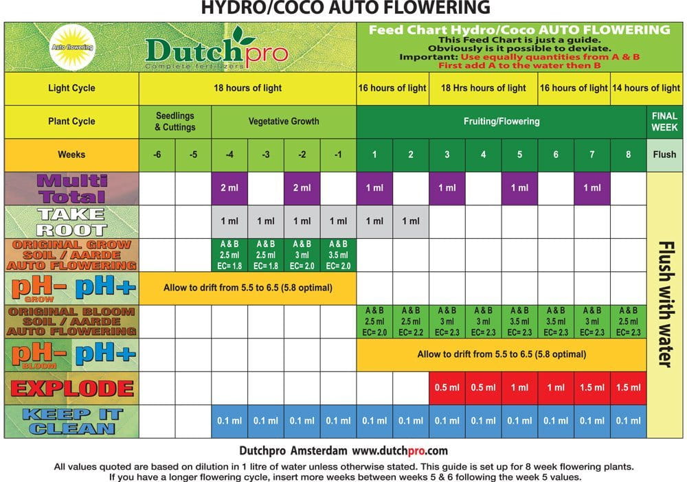 Dutchpro Hydro/Coco Bloom A+B (Auto Flowering) to wyjątkowy nawóz na kwitnienie przeznaczony do nawożenia Hydroponiki oraz Kokosu. Produkt zawiera wszystkie makro i mikro składniki odżywcze służące do stymulowania wzrostu niezbędne do optymalnego kwitnienia roślin.