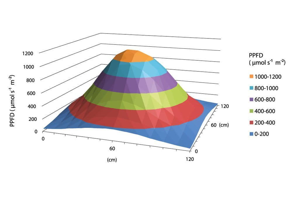 - Osprzęt wydajność za pomocą danych wejściowych moc (200W) (μmol / J) – 2,3