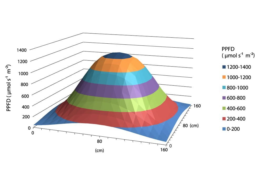 - System 5 barów - zapewnia bardzo równomierne pokrycie (PPFD) całej czaszy.