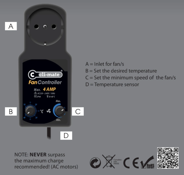 Kontroler Wentylatora Cli-mate AC-2010D 4A umożliwia automatyczną regulację wydajności każdego typu wentylatora.